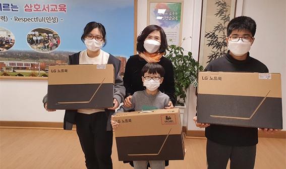 노트북을 받게 된 3명의 학생은 담임 선생님과 학교, 노트북을 지원해준 분들에게 감사의 마음을 표하고, 따뜻한 마음을 받은 만큼 훗날 어른이 돼서 다른 이웃에게도 따뜻한 마음을 나눌 수 있는 사람이 되겠다고 다짐했다.