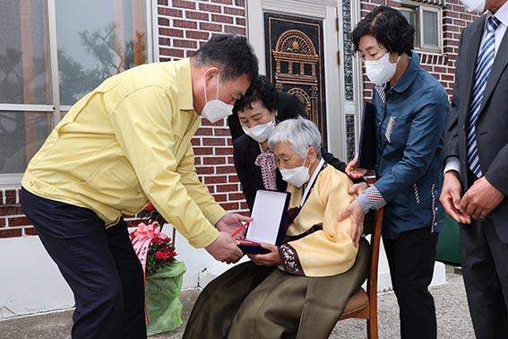 젊은 시절 남편을 잃고 2남 2녀의 자녀를 홀로 키운 김귀례 어르신은 훈장을 받고 “남편이 살아서 집으로 돌아온 것만 같다”며 눈시울을 붉혔다.