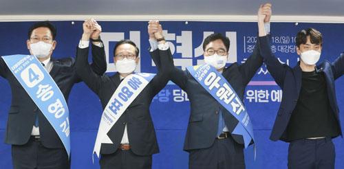 이상민 민주당 선거관리위원장은 18일 오후 여의도 당사에서 열린 당대표 후보자 선출을 위한 예비경선 결과 3명의 최종 후보가 이같이 결정됐다고 밝혔다.
