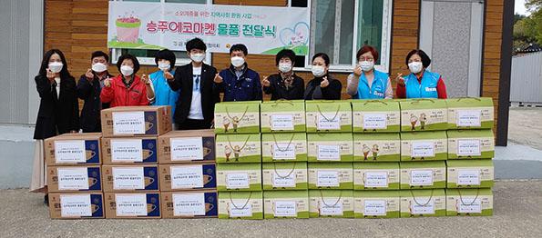 순천시 승주읍에 소재한 지역사랑복지학교 내에 자리하고 있는 ‘승주 Eco-Market(이하 에코마켓)’에서 코로나19로 지친 지역 내 저소득 주민들을 위해 마스크 2만매와 한과 45박스를 지난 16일 승주읍행정복지센터에 기탁했다.