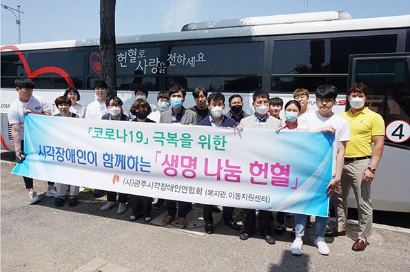 광주시각장애인연합회는 코로나19를 극복하고 생명사랑을 실천하기 위한 단체헌혈운동에 동참했다.
