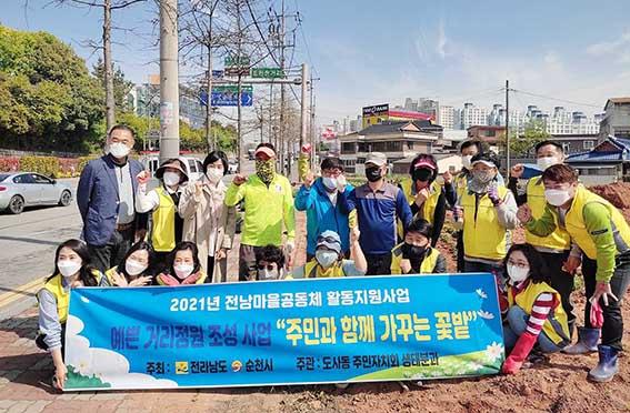 순천시 도사동 주민자치회는 청암대학교 맞은편 유휴지(덕월동 275-1번지 일원)에 주민과 함께 가꾸는 꽃밭을 조성했다.