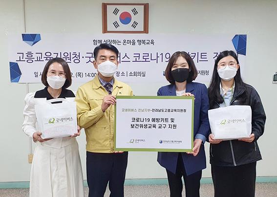 고흥교육지원청은 22일에 소회의실에서 굿네이버스와 코로나19 예방키트 및 보건위생교육 교구 전달식을 가졌다.