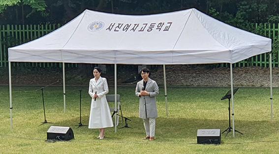 서진여고 학생 및 교직원이 지난 4월27일 교내 잔디운동장에서 실시된 ‘찾아가는 힐링스쿨 콘서트’를 통해 따뜻한 위로와 감동을 받았다. ‘찾아가는 힐링스쿨 콘서트’는 코로나 펜데믹으로 위축된 학교현장을 찾아가 아름다운 음악을 공연하는 광주시교육청 사업이다.