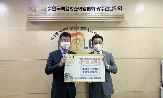 학교법인 죽호학원이 지난 4월30일 (사)한국백혈병소아암협회 광주전남지회에 200만 원을 기부했다.