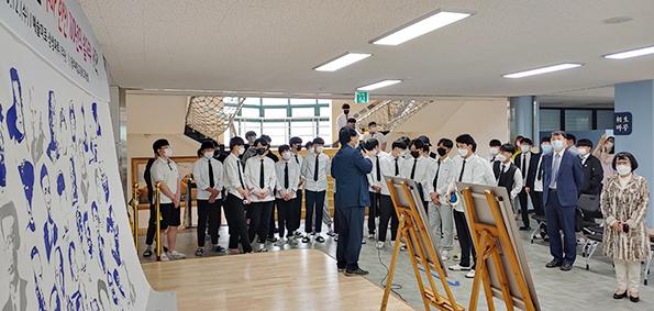 13일 광주제일고에 따르면 이번 행사는 외교부가 주최하고 전남대 평화통일외교센터·광주제일고학생회가 주관했다. 외교부 중남미협력과장, 광주서중·일고총동창회 임원, 교직원, 학생대표 등 50여 명이 참석했다. 코로나19 예방을 위해 예방수칙을 철저히 준수하며 진행됐다.