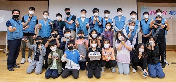 ‘코딩 교육 재능봉사단’은 다양한 센서나 부품을 부착할 수 있는 기판으로 컴퓨터를 통해 만든 프로그램에 따라 작동하는 아두이노와 여러 센서를 활용한 코딩 실습교육을 단계적으로 구성했다. RC카, 드론 제작 등 다양한 커리큘럼을 통해 지역 청소년들의 융·복합적 사고력과 문제해결력 향상을 돕는다.