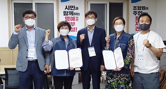 부지부장은 회계과에 근무하고 있는 전동준(44세), 상수도과 홍경현(42세), 보건위생과 김재비(44세)가 당선되었고 회계감사위원장은 하수도과에 근무하고 있는 전용태(51세)가 당선되었다.