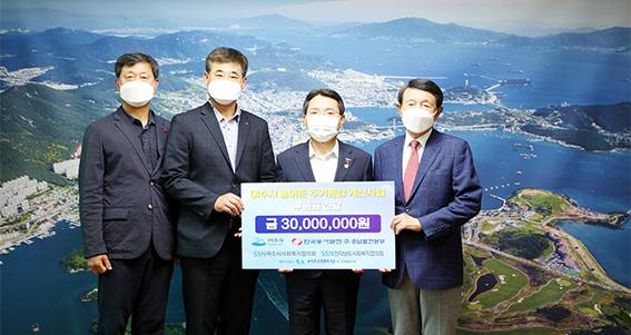 한국동서발전(주) 호남발전본부는 지난 24일 월요일, 여수시청에서 권오봉 여수시장, 신상두 호남발전본부장, 노진영 전남사회복지협의회장 및 임채욱 여수시사회복지협의회장 등이 참석한 가운데『여수시 농어촌 주거환경 개선사업』 후원금 3천만원을 여수시에 전달하였다.