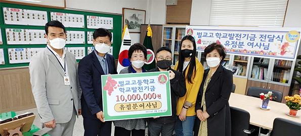 지난 21일 벌교고등학교에서 유점분(73세, 경기도 안양시) 여사의 학교발전기금 1천만원 전달식이 교장실에서 있었다.