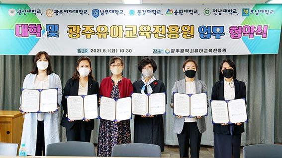 광주유아교육진흥원이 1일 오전 광주지역 소재 대학 중 유아교육과가 설치된 전남대·광신대·광주여대·남부대·동강대·송원대·호남대 등 7개 대학과 업무협약을 체결했다.