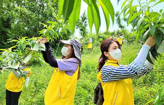 이들은 지난달 27일 강진 신전면에서 마늘 수확 작업에 나선데 이어 2일 순천 월등면에서 복숭아 봉지 씌우는 작업을 도왔다. 봉지 씌우기 작업은 병해충 예방과 과실 착색 관리를 통해 풍작을 일구는 중요한 작업이다.