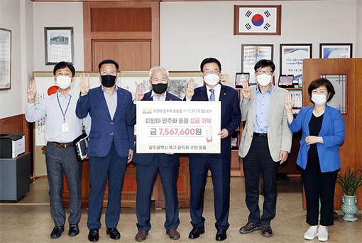 기탁식에는 문인 북구청장을 비롯해 정동년 5·18기념재단이사장과 이기봉 미얀마 광주연대 집행위원장이 참석했다.