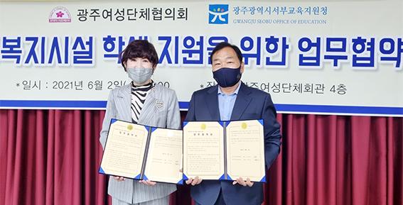 광주서부교육지원청이 광주여성단체협의회와 지난 2일 광주여성단체회관에서 아동복지시설 학생 지원을 위한 업무협약식을 개최했다.