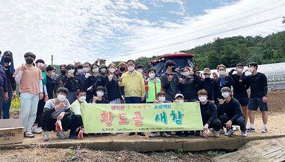 초당대 총학생회는 5월26일 마늘 수확 봉사활동에 이어 이번이 두 번째 봉사활동으로 35명의 학생이 참여했다.