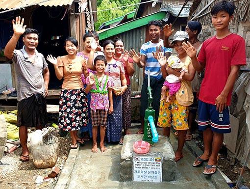 광주에 사는 박주원(60)씨와 박씨의 아들 박상호(31)씨로부터 우물시설을 기부받은 미얀마 주민들. (사진 제공 = 박주원씨)
