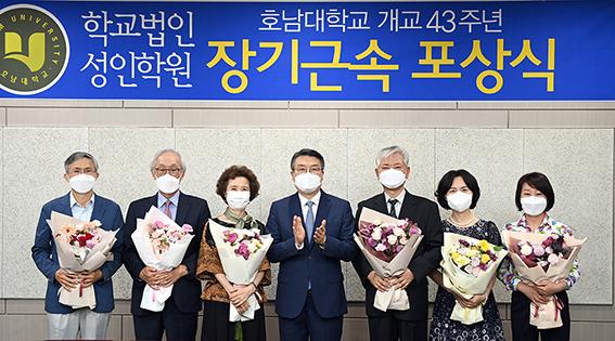 개교 43주년을 맞은 학교법인 성인학원 호남대학교가 30년 장기근속 교직원 6명에 대한 장기근속 포상식을 갖고 그동안의 노고를 격려했다.