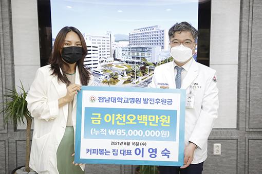 이영숙 대표는 이번 후원금을 포함해 지금까지 전남대병원 발전후원금으로 다섯 차례에 걸쳐 총 8500만원을 기부했다.