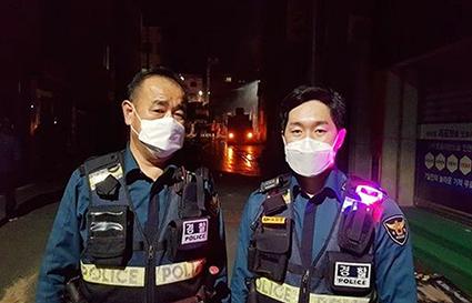 범인을 검거한 김성용 경위와 홍혜찬 경장은 지난 3월17일 연향동 상가 화재 때 소방관, 시민들과 함께 화재 건물 2층에 있던 주민 4명을 무사히 대피시킨 주인공이다. 두 경찰관은 당시의 공로를 인정받아 전남도지사로부터 의인상을 수상하기도 했다.