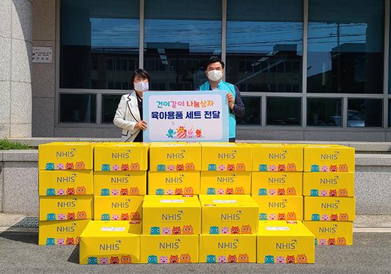 건보공단 무안신안지사 봉사단원은 23일 신안군 가족센터와 함께 저소득 가정에 10만원 상당의 육아용품 세트 건이강이 나눔상자를 30개를 기증하는 시간을 가졌다.