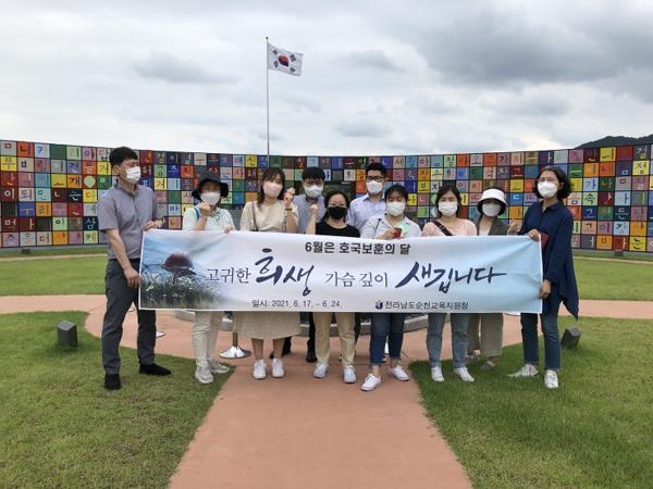 순천교육지원청은 청내 전직원을 대상으로 6·25 참전 용사들의 희생을 추모하고, 여순 사건 현장을 답사하며, 아픈 역사를 뛰어 넘어 통일로 한걸음 도약할 수 있는 역량을 키우기 위해 ‘호국보훈의 달 행사’를 가졌다.