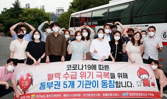 코로나19로 헌혈이 감소하는 등 혈액수급 위기극복을 위해 지난 28일 순천 팔마체육관에서 열린 헌혈행사에 전남도 동부지역본부는 직원들이 참석해 헌혈을 하고 있다. 이날 대한적십자사 광주·전남 혈액원이 주관한 혈액수급 헌혈에 동부권 유관기관 직원 60여 명이 동참했다.