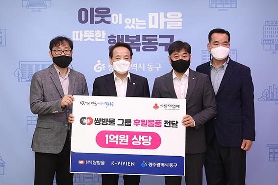손영섭 대표는 “코로나19 장기화로 어려움을 겪고 있는 소외이웃들을 위해 앞으로도 지속적으로 사랑 나눔을 실천하겠다”고 말했다. 문정률 이사는 “광주 동구 돌봄 이웃들에게 쌍방울그룹의 따뜻한 온기가 전해져 더욱 행복한 지역공동체가 되기를 소망한다”고 말했다.