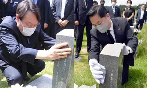 한편 윤석열 전 총장은 지난 17일 오전 국립5·18민주묘지를 찾아 박관현 열사, 홍남순 변호사, 김태홍 전 국회의원 묘역을 둘러본 뒤 2묘역으로 이동해 김홍일 전 의원, 민족민주열사묘역(옛 망월묘역)에서 이한열 열사의 묘지를 잇따라 참배했다.