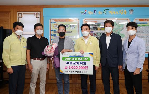 장흥군은 지난 19일 장흥군체육회(회장 윤영환)가 집중호우로 피해를 본 수재민들을 돕기 위해 사용해 달라며 성금 300만 원을 기탁했다고 밝혔다.