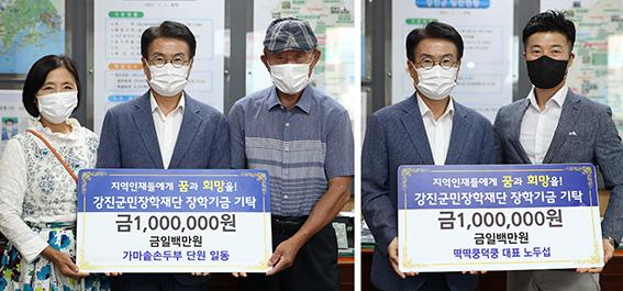 이승옥 강진군민장학재단 이사장은 “코로나19로 모두가 어려운 시기에 지역 교육 발전에 대한 관심과 애정으로 뜻깊은 기부를 해주신 두 대표께 감사 드린다”며 “강진의 학생들이 저마다의 꿈을 펼칠 수 있는 양분이 되도록, 소중하게 전달하겠다”고 말했다.