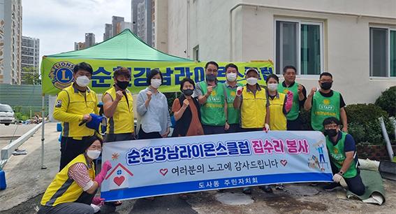 순천강남라이온스클럽은 순천시 도사동에 거주하는 취약계층 가구를 방문하여 청소, 도배, 가스레인지 교체 등 쾌적한 주거환경 개선을 위한 봉사활동을 펼쳤다.