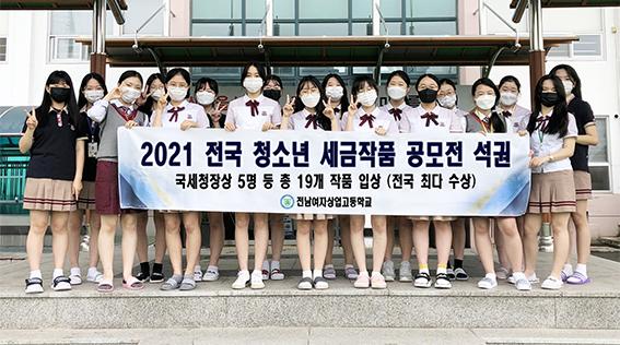 전남여상이 '2021 전국 청소년 세금작품 공모전'에서 국세청장상, 광주지방국세청장상, 북광주세무서장상 등 총 19명이 수상했다. 그 중 최고상인 국세청장상을 5명이 수상하며 전국 최다 수상의 쾌거를 이뤘다.