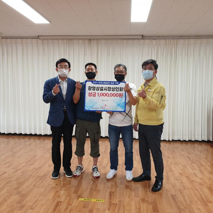 전달된 이웃돕기 성금은 지역 내 복지 사각지대에 있는 어려운 이웃에게 지원될 예정이다. 이번 기부는 광영상설시장 내 점포들이 참여해 마련한 것으로, 코로나19 장기화로 어려운 시기를 보내고 있는 소상공인들이 나눔을 실천해 의미가 크다.