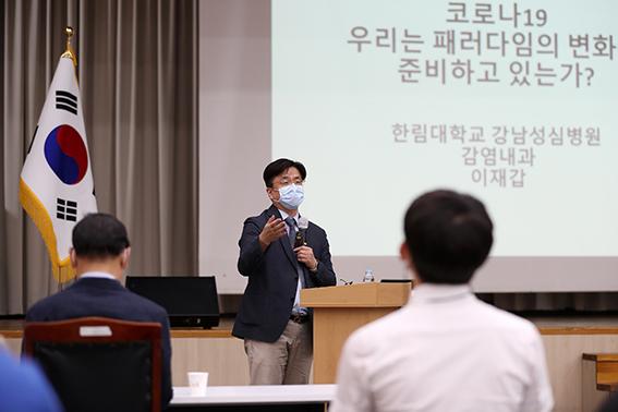 광주 광산구(구청장 김삼호)는 10일 구청 7층 윤상원홀에서 이재갑 한림대 감염내과 교수를 초청해 ‘코로나19 시대 대응과 전망’이라는 주제로 공직자·주민 대상 인권·건강 교육을 진행했다.