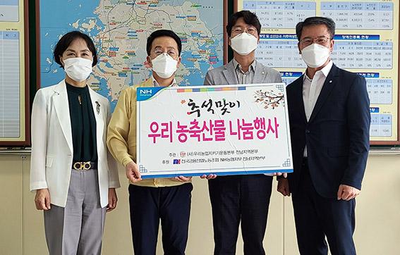 농협 전남노동조합은 농협전남지역본부와 함께 최근 전남도청에서 코로나19 방역에 힘쓰고 있는 전남도청 보건복지국에 추석맞이 농축산물 사랑 나눔행사를 가졌다고 14일 밝혔다.