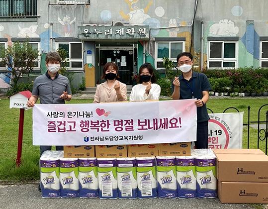 담양교육지원청에서는 매년 명절맞이 마음 나눔을 실천하고 있으며 이번에는 코로나19 상황을 감안해 최소인원으로 방문해 생활용품 등을 전달하고 어려운 이웃에 대한 나눔을 실천했다.
