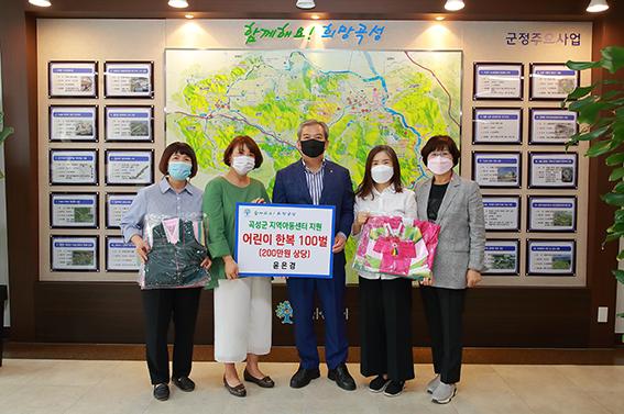 곡성군은 죽곡면에 귀촌한 윤은경 씨가 아동용 전통한복 100벌(남 41벌, 여 59벌)을 곡성군지역아동센터 7개소에 기부했다고 밝혔다.