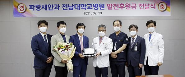 광주지역 대표적 안과병원인 파랑새안과가 23일 전남대학교병원 발전후원금으로 4000만원을 기탁했다.