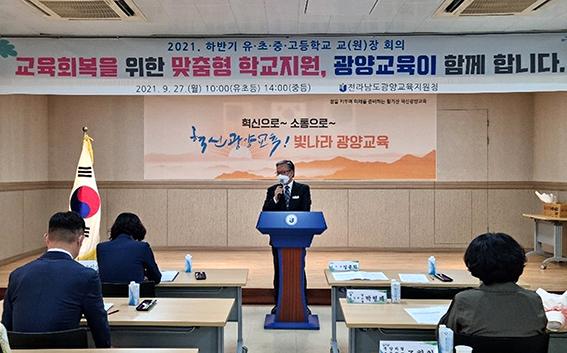 광양교육지원청은 지난 27일 광양교육청 대회의실에서 코로나19 방역수칙을 준수한 가운데 오전과 오후 2회에 걸쳐 교육회복 지원을 위한 유·초·중·고등학교 교(원)장를 개최했다.