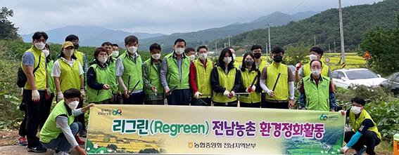 농협전남지역본부는 29일 농협영광군지부와 함께 영광군 군남면 남창리 일대에서 임직원 40여명이 참여한 가운데 '리그린(REGREEN) 농촌 환경정화' 활동을 실시했다.