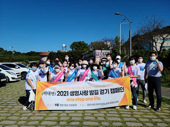 캠페인 마지막 날인 30일에는 광주서부교육지원청 민주시민교육지원과, 광주생명의전화, 지역민, 학생 등 40여 명이 풍암호수공원 일대 5.9km를 걸으며 진행했다.