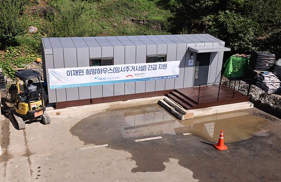 희망브리지 전국재해구호협회는 광양시 진상면 탄치마을에 이재민 희망하우스(임시주거시설)를 설치했다.