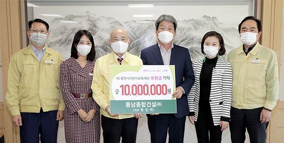 지난 19일 광양시청 접견실에서 개최된 기탁식에는 정현복 광양시장, 왕상희 동남종합건설(주) 대표 등 5명이 참석한 가운데 진행됐다.