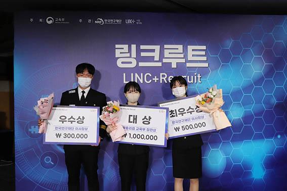 목포해양대학교 LINC+사업단(링크사업단)이 지난 18일 개최된 ‘2021 산학협력EXPO-링크루트(LINC+Recruit, 모의 면접 프로그램)’에 참가해 대상(항해학부 4학년 김세은), 최우수상(기관시스템공학부 4학년 김성윤), 우수상(항해학부 4학년 최산)을 수상했다.