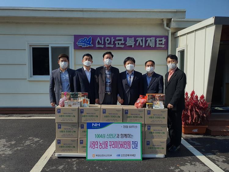신안군복지재단은 지난 19일 농협 목포신안시군지부 신안군청출장소(지점장 이강동)으로부터 농협 창립 60주년 기념 사랑의 농산물 꾸러미 100박스 560만원 상당을 기부받았다고 전했다.