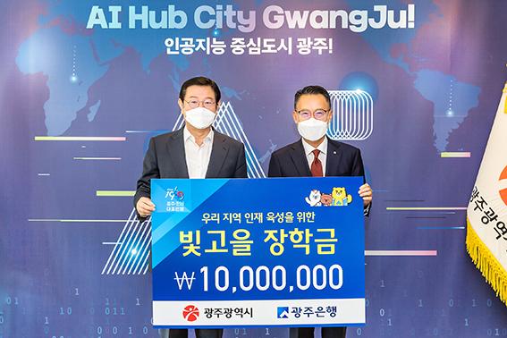 광주은행은 21일 광주시청에서 이용섭 광주시장과 송종욱 은행장 등이 참석한 가운데 (재)빛고을장학재단 인재육성 장학기금 전달식을 가졌다고 밝혔다.