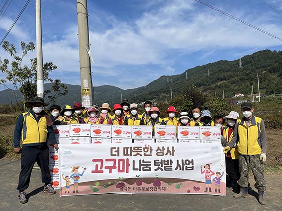 상사면마중물보장협의체는 지난 6월 어려운 이웃들을 돕기 위해 나눔 텃밭에 고구마를 식재했고, 틈틈이 짬을 내 고구마밭 잡초를 제거하는 등 5개월간 정성을 들여 키워 지난 26일 마중물 위원 20여 명은 직접 고구마 100박스를 수확했다.
