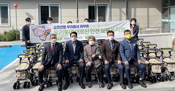 순천신협은 거동불편 어르신들의 행복한 노후생활을 위해 500만원 상당의 성인용 보행기 40대를 지난 26일 순천시 왕조1동 행정복지센터에 전달했다.