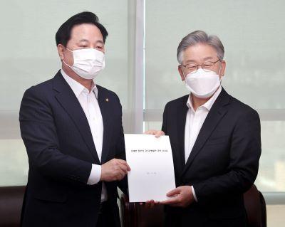 이 후보와 김 의원은 이날 오후 국회 의원회관에서 차담 형식의 회동을 갖고 이같이 합의했다고 이 후보 비서실장 박홍근 의원이 전했다.