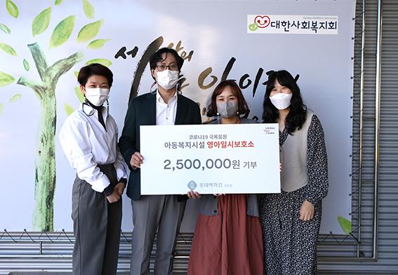 롯데백화점 광주점은 28일 광주 동구 영아일시보호시설에 행사 수익금 전액을 기부했다. (사진=롯데쇼핑 제공) 2021.10.28